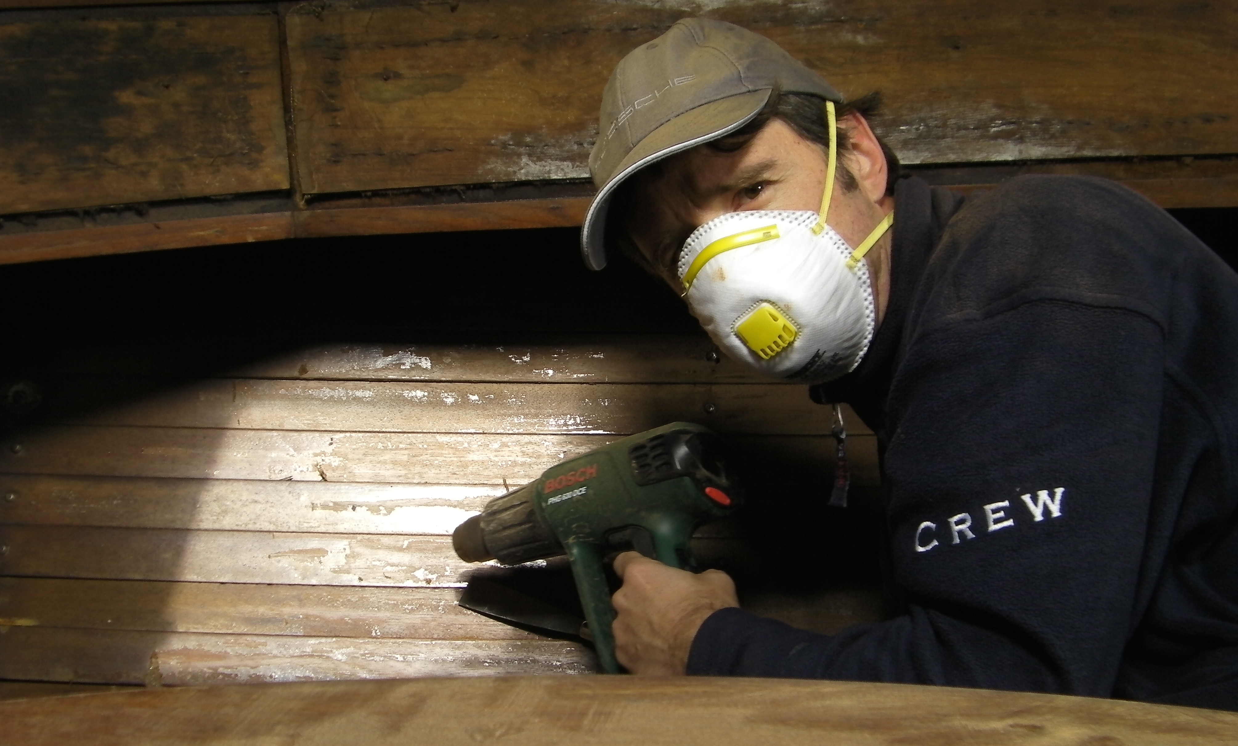 I sanded the main bulkhead. It was going slow and it was actually much more difficult than I thought it would be. I stopped sanding because I realized that I will also need a vacuum cleaner, otherwise the whole boat would end up in a complete mess.