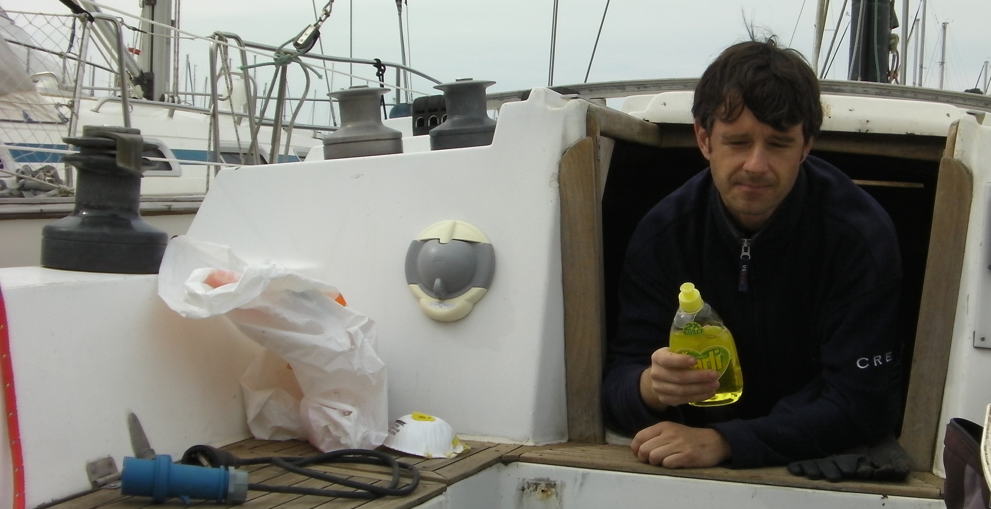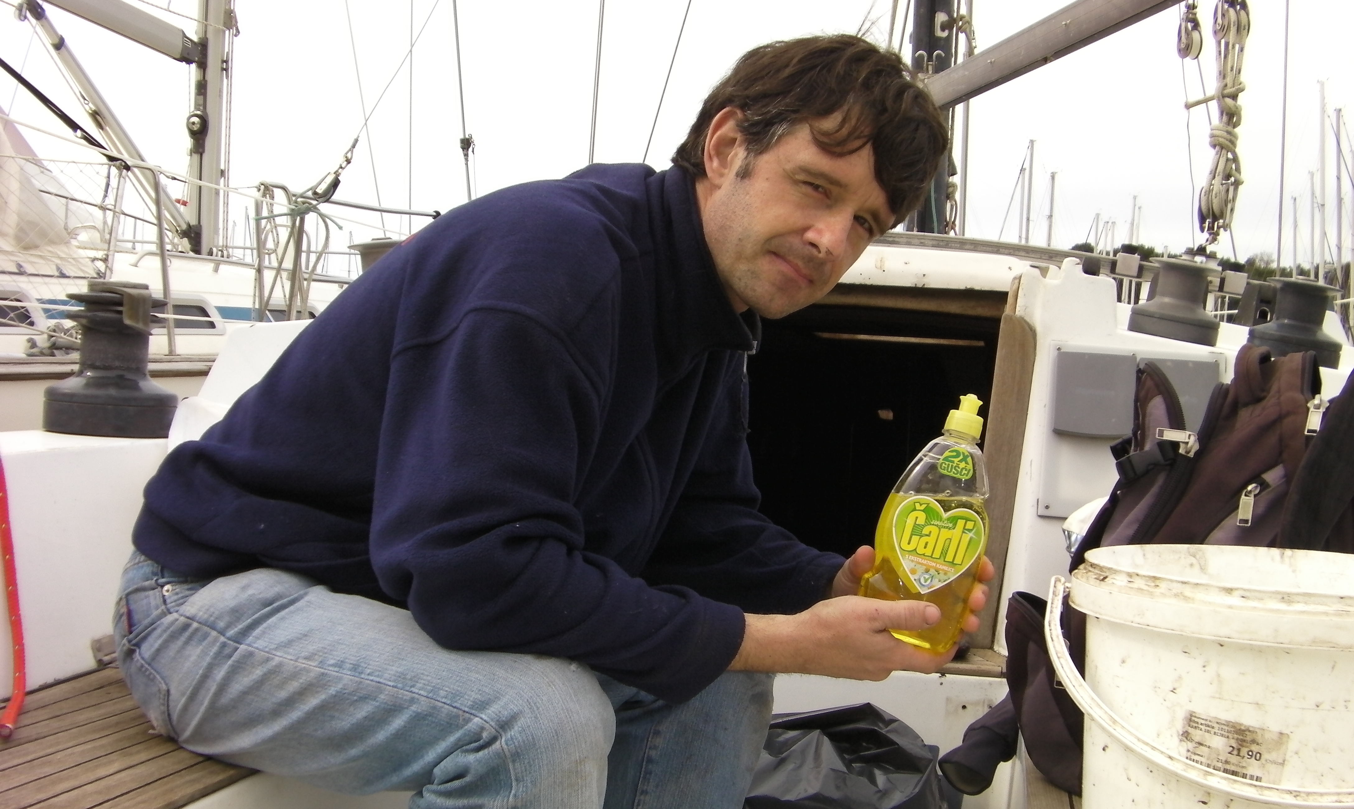 A few weeks ago when we were cleaning the boat for the first time, on our lunch break we went to the supermarket to buy something to eat and Maja spotted a dish washing detergent ‘Čarli’ (Charlie:) on sale. I thought we could use it to wash our hands, but as it turned out, it does so much more…
