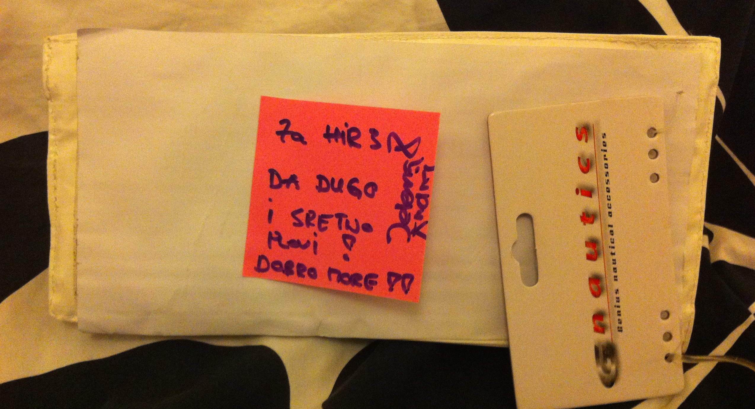 IMG_3594First thing I saw was a note that said: ‘For HIR 3. Long and happy sailing! Fair winds!!! Jelena & Andrej’