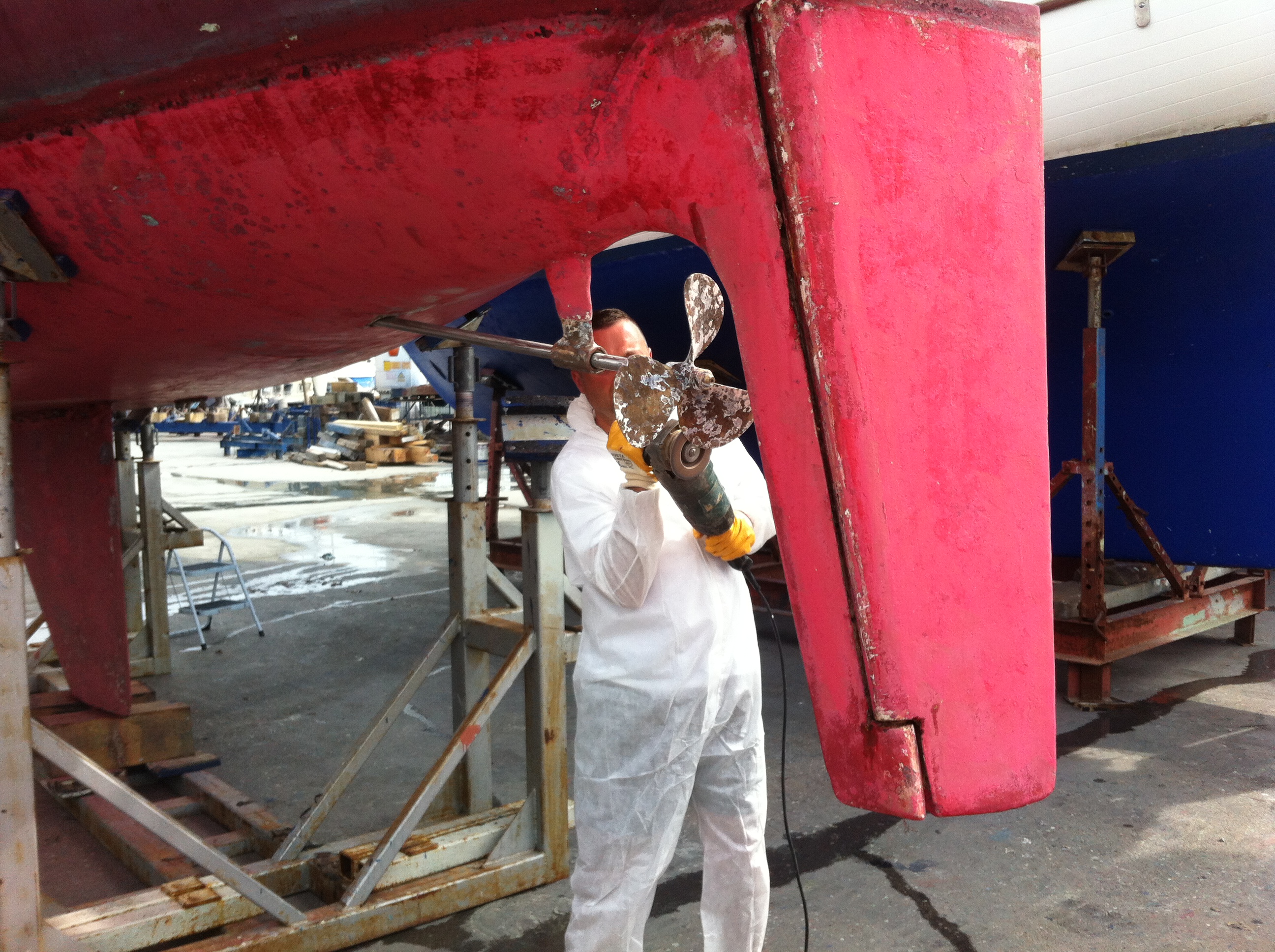 It’s the time of year when the boat has to go out of the water for spring preparations, so I organized everything and went to Vrsar with Elvis to do some serious work. The mariners from the marina towed the boat to the crane, they took the boat with a crane to a dry berth… and we immediately started working.