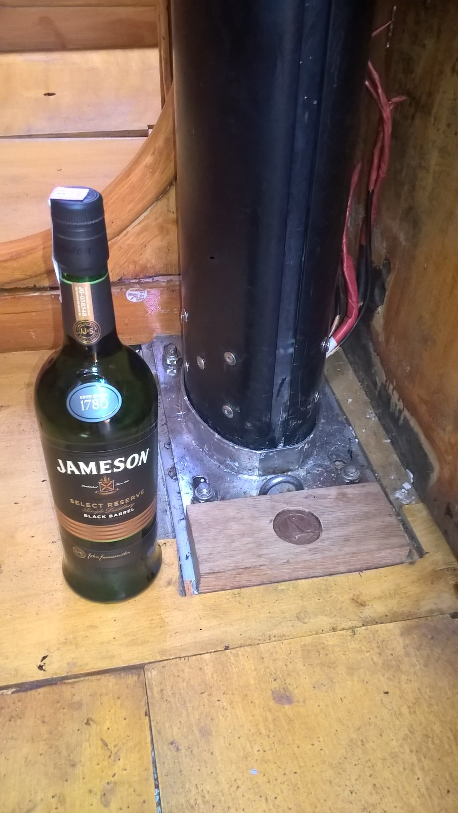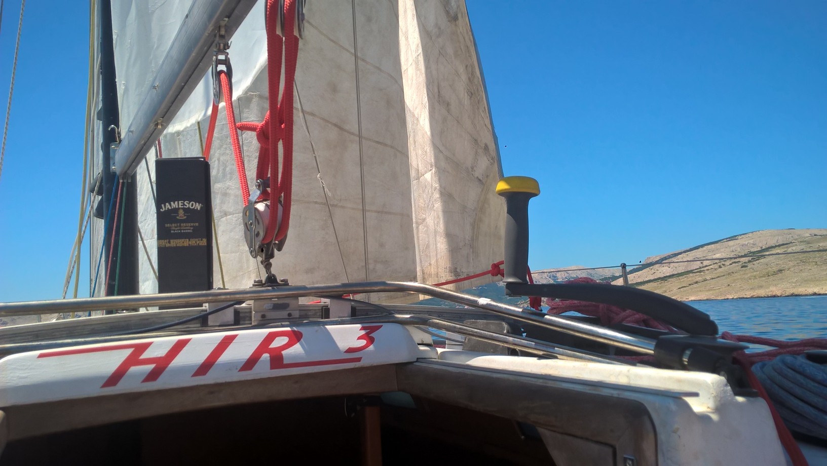 There is still a lot of work to be done, but housing sails and first sailing on board HIR 3 after more than two years of refit deserved a proper champagne and whiskey that I opened after I’ve put a coin under the mast…