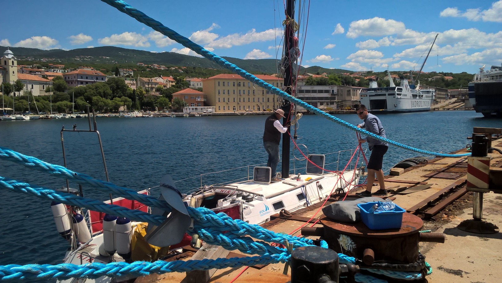 HIR has been in Kraljevica Shipyard on dry berth for almost three months now… I am a patient man, but even I became nervous and was thinking if I would ever set sail…. but then, finally… After we’ve put new antifouling, engine was fixed, mast step and all shrouds and lifelines were replaced, we painted the mast, put the new windex on top, roll system was serviced, new halyards were in place and mast was stepped and trimmed properly… we were ready to sail away:)!